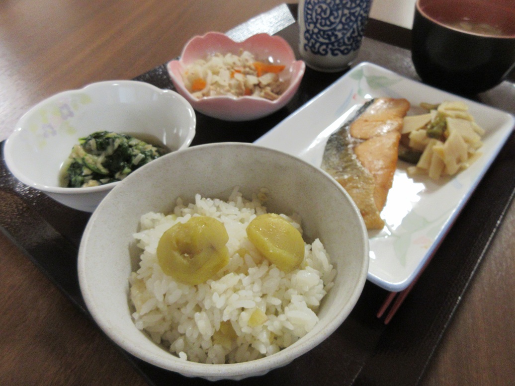 本日の昼食献立 ・栗ご飯 ・さけの若狭焼き