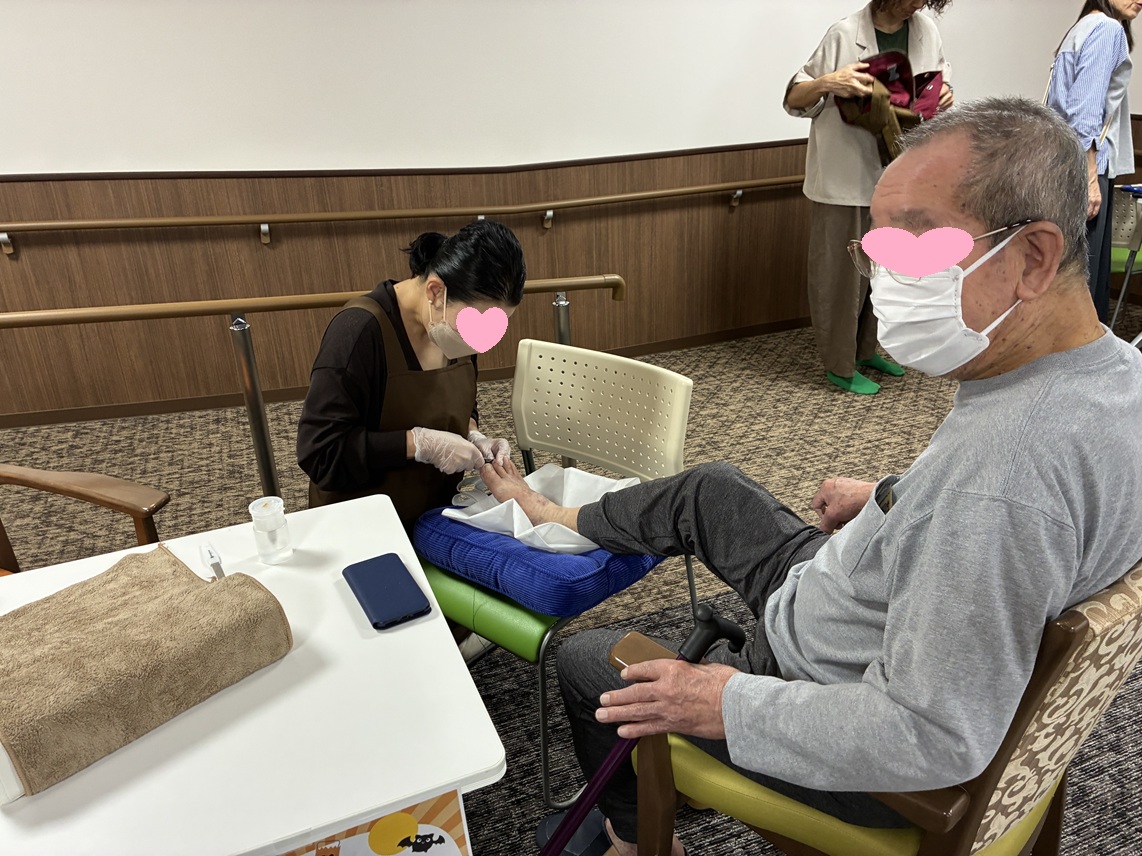 ネイルブースでは、グランクオーレの入居者様の足爪切りは