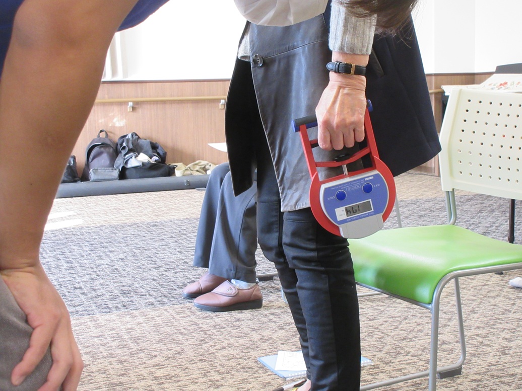 ・連続立ち上がり ・発声タイム測定 ・握力 など。