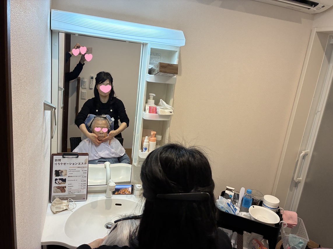 エステを受けられた入居者様に「お顔のお肌、とっても