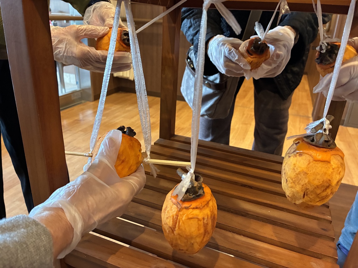 柿の様子を確かめながら、一つ一つ丁寧に揉んで