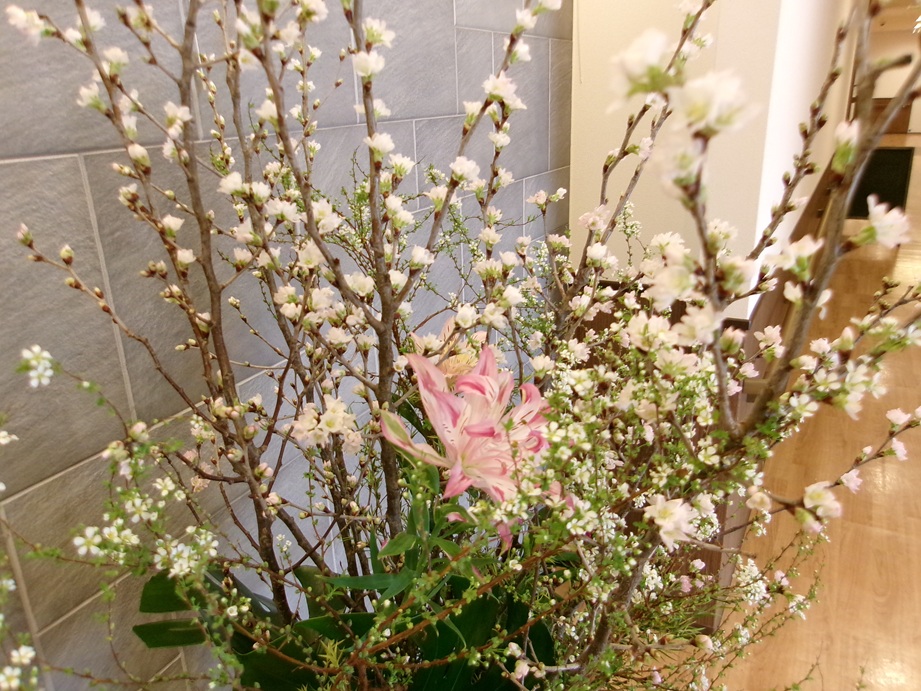 今週、エントランスには「啓翁桜