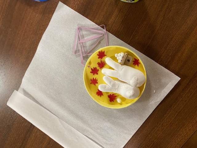真っ白で軽いマシュマロのような粘土を優しく丸めて丸めて…