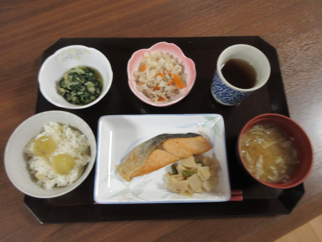 本日の昼食献立 ・栗ご飯 ・さけの若狭焼き
