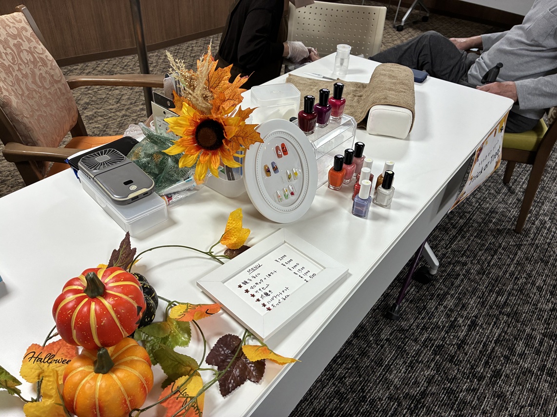 ネイルブースでは、グランクオーレの入居者様の足爪切りは