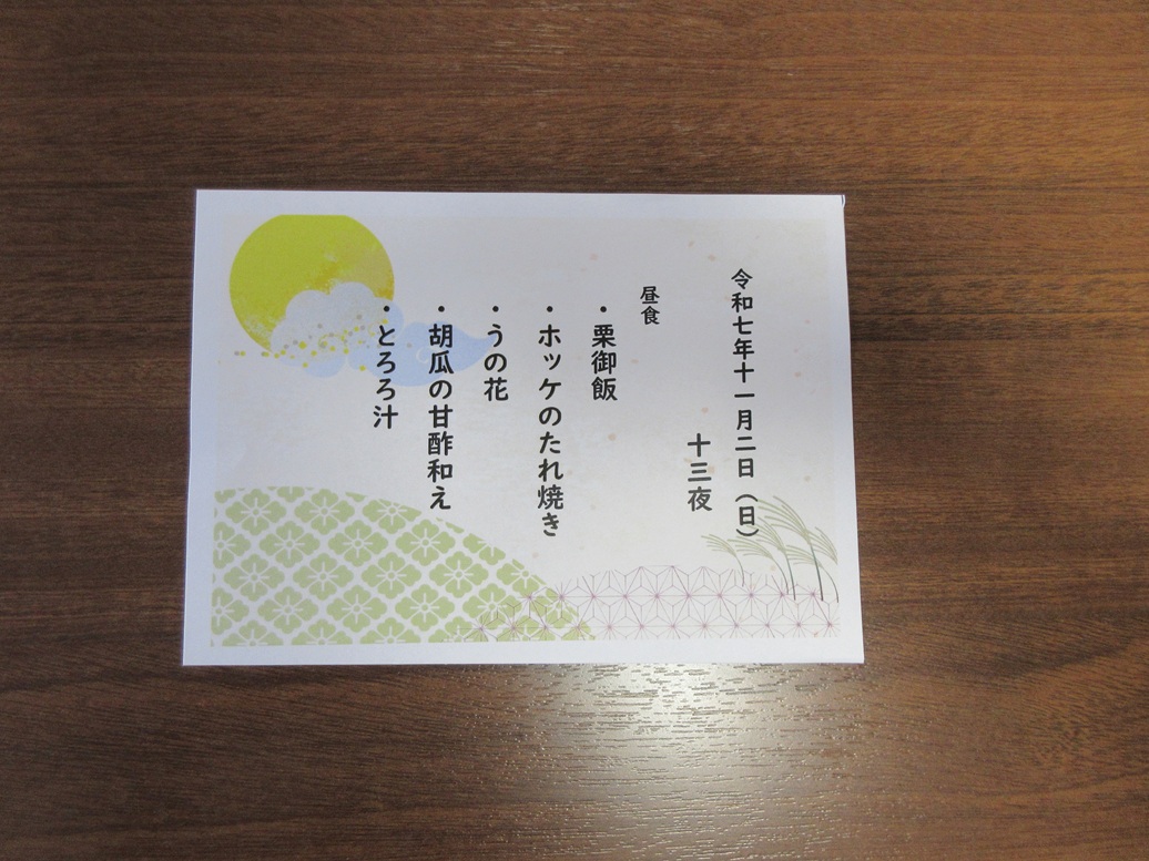本日は十三夜。当グランクオーレでは、この風情行事に