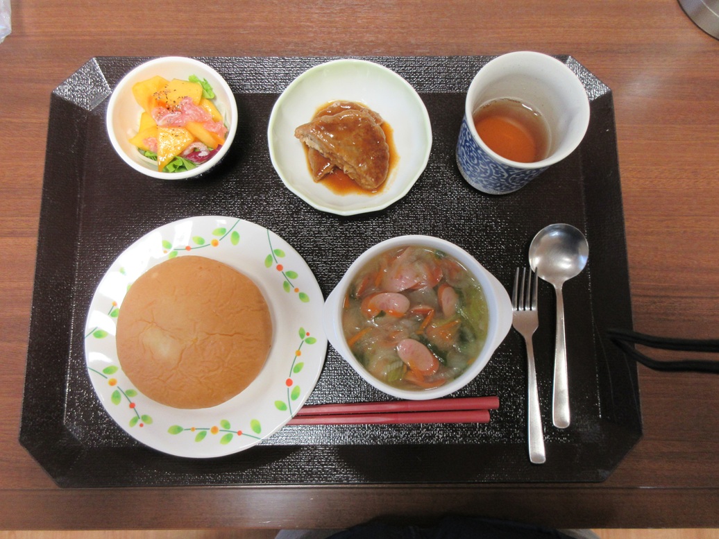 ・大豆ミートハンバーグ ・しろなとウインナーのスープ