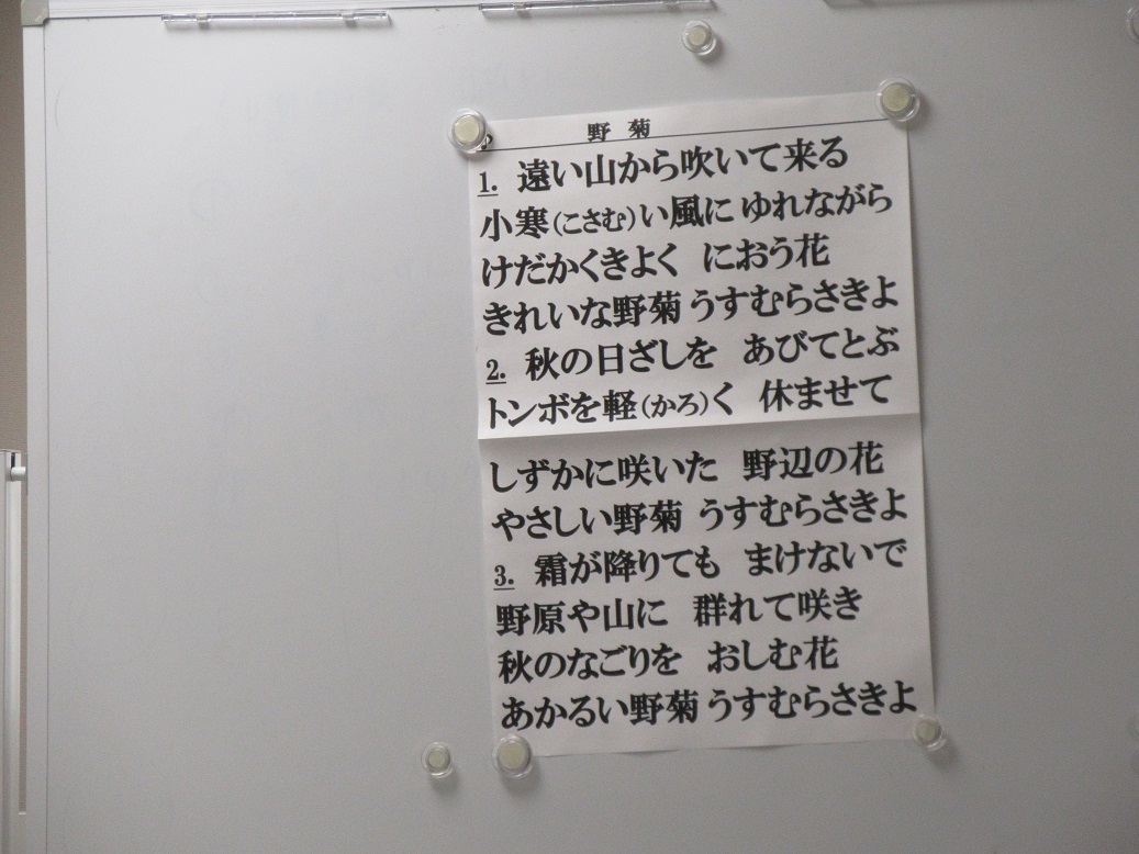 曲目は「カエルの歌」、「しずかな湖畔」「里の秋」「野菊」