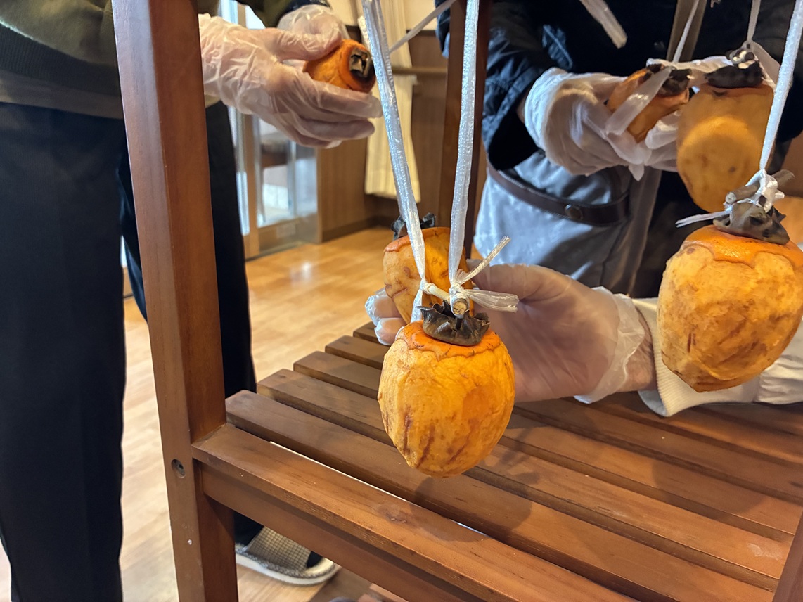 「大きな柿だから時間かかるわ」と入居者様同士で