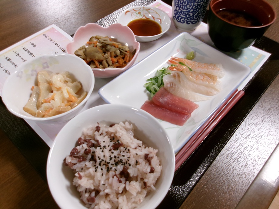 新鮮なお刺身の盛り合わせ。普段、お昼は