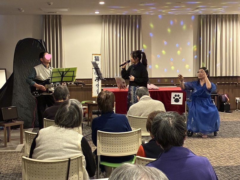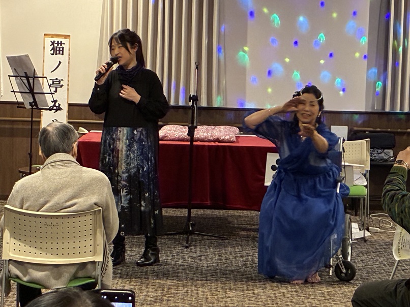 歌声に合わせ、ハルミさんの優雅な手の動きを