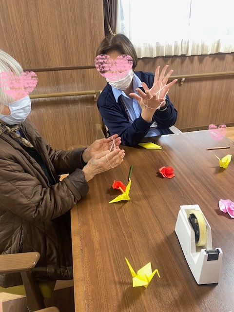 今日は女性陣が集まって折り紙とあやとりをしました☆