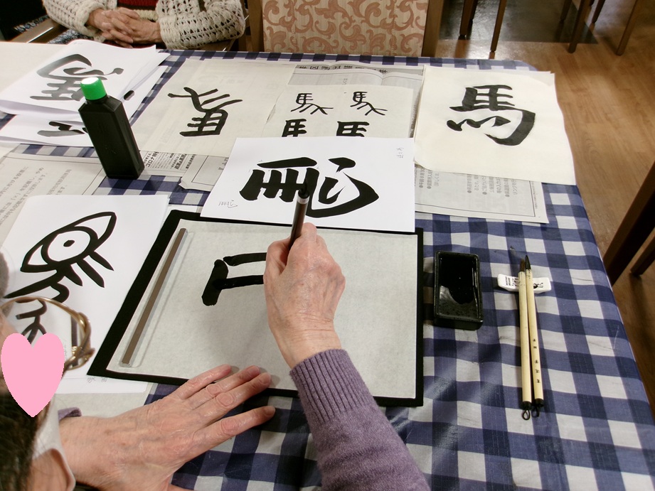 半紙を横にし、左から右へと筆を走らせる技法。