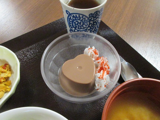 可愛らしいハート形のチョコプリンをご用意