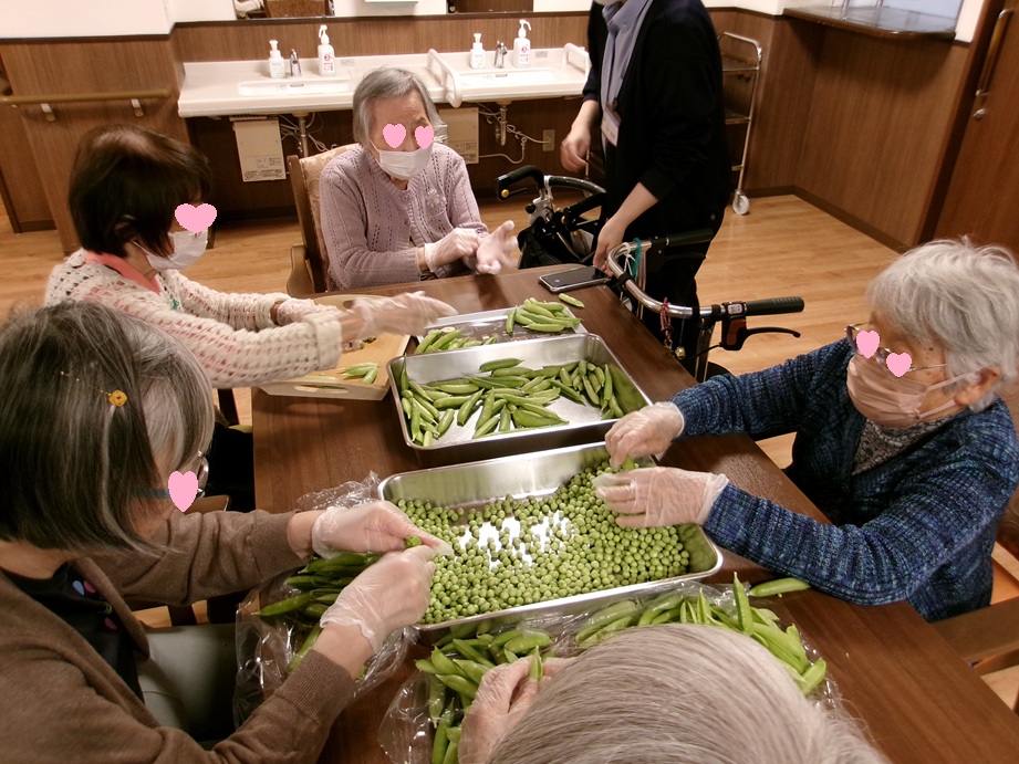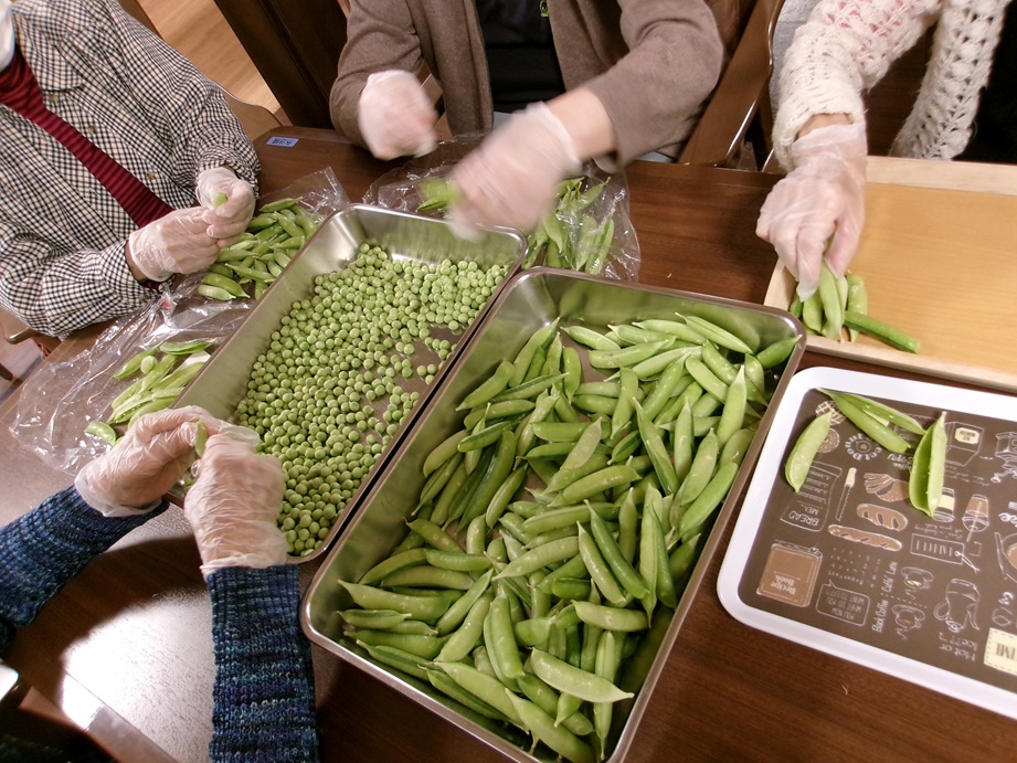 今日の行事食(夕食)「豆ご飯」に向けて、